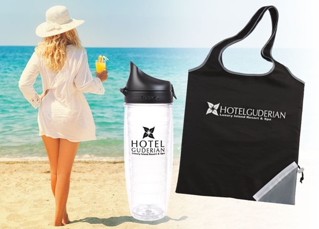 A resort wanted to make sure guests felt safe as they reopened after COVID-19 stay-at-home orders were lifted. At check-in, they chose to provide each guest with a Fold-Up Cinch Corner Tote to keep belongings together while enjoying the resort amenities and activities. They also provided a high-quality  Tervis® Classic Sport Bottle – 24 oz. so guests could use their own drinkware for the duration of their stay. Both were imprinted with the resort logo and seasonal tagline.